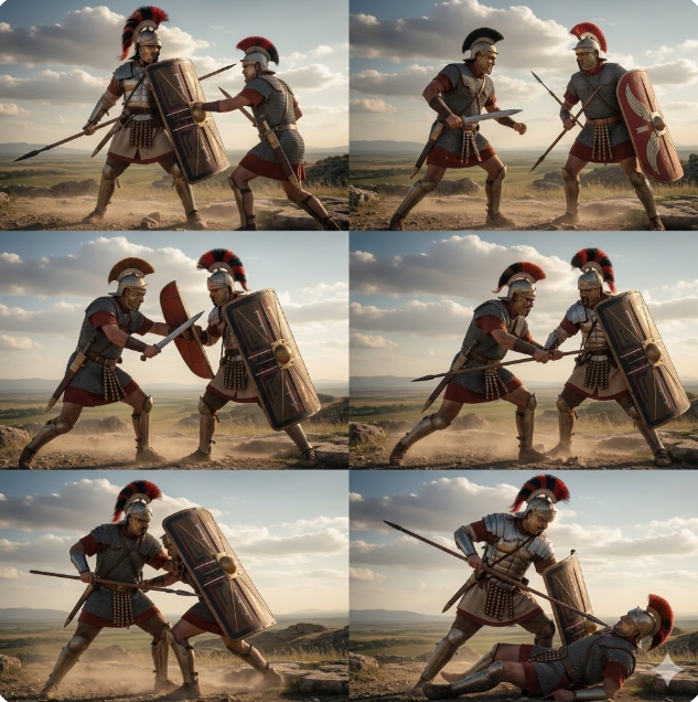 Il romano attacca con il gladio.